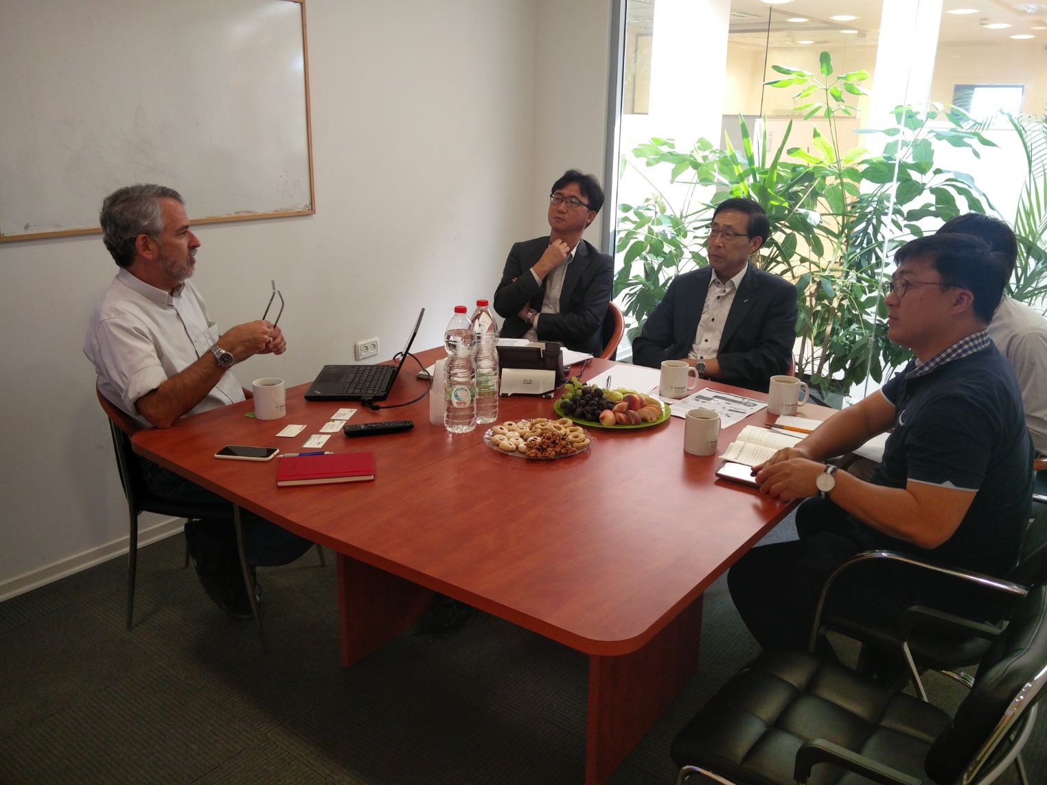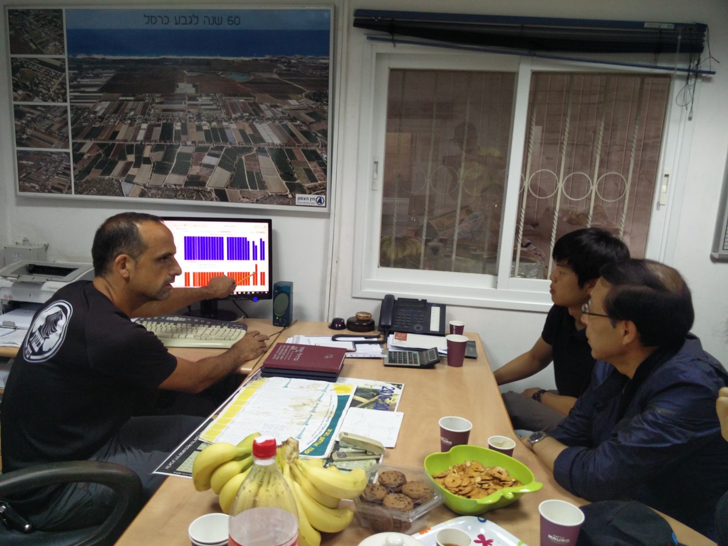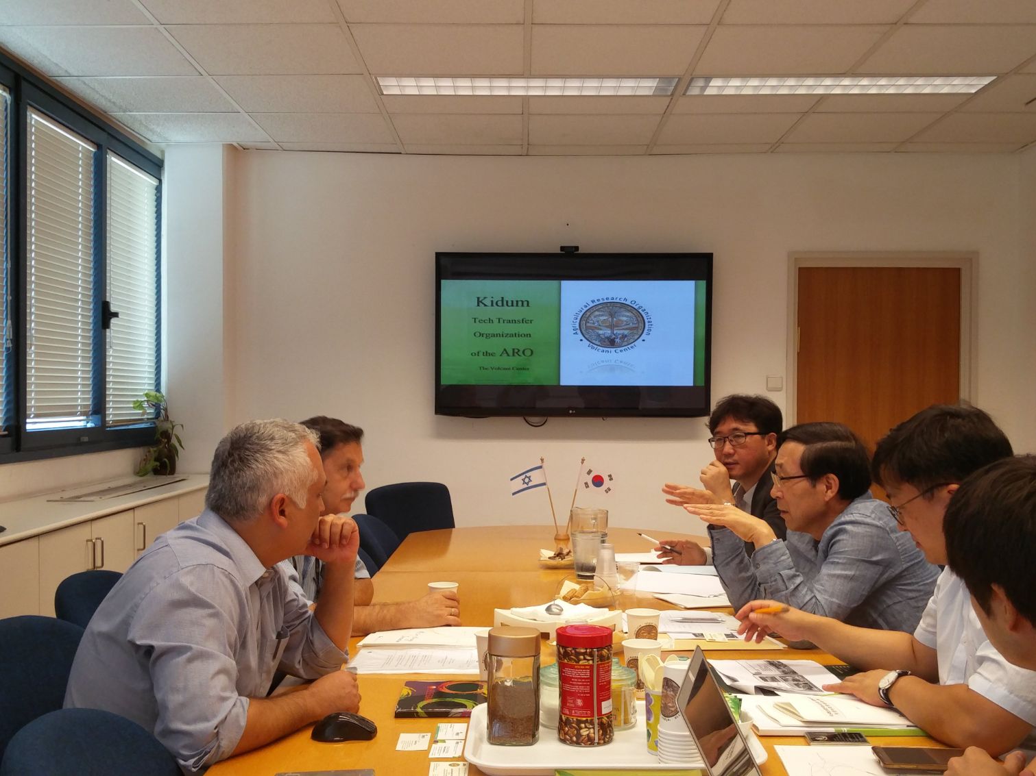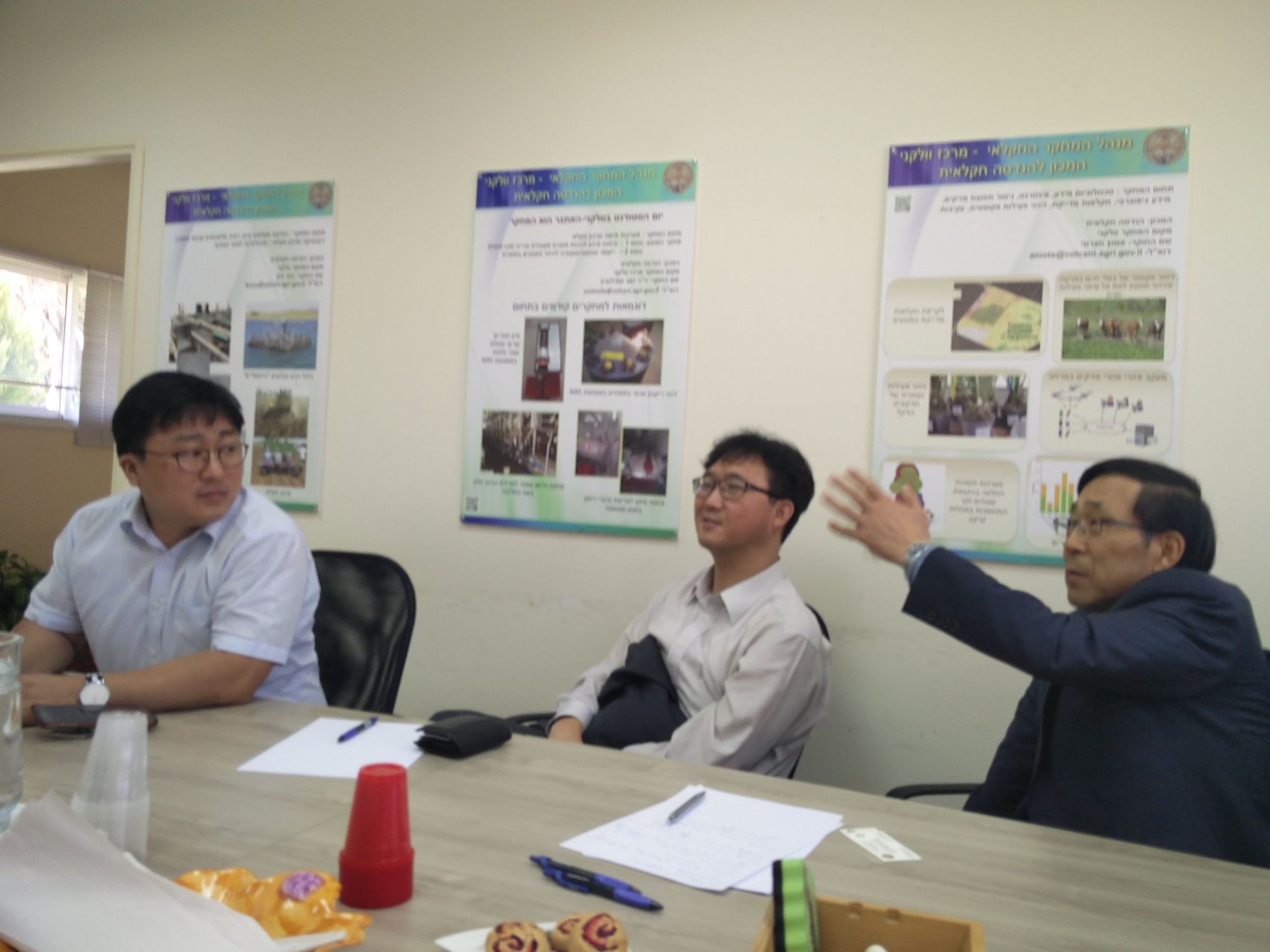 농기평 관계자들은 또한 르호봇(Rechovot)에 위치한 이스라엘 농업 연구청 (Israeli Agriculture Research Organization -ARO), 볼카니 센터를 방문하여 연구개발팀 부소장이자 극동 지역팀 책임자인 Mr. Sheenan Harpaz 교수를 만났고, Harpaz 교수는 농기평 관계자들에게 ARO에서 개발한 몇 가지 첨단 기술을 소개했습니다. 또한, 농업 공학 부서의 Abraham Arbel 박사님 (Abraham Arbel, Ph.D, Researcher at Agricultural Engineering unit )과 ARO기술사업화를 담당하는 키둠 (Kidum)의 Jacob Mualem 연구원으로부터 이스라엘에서 농업 기술의 상업화는 어떻게 이루어지는지에 대해 설명을 들었습니다.